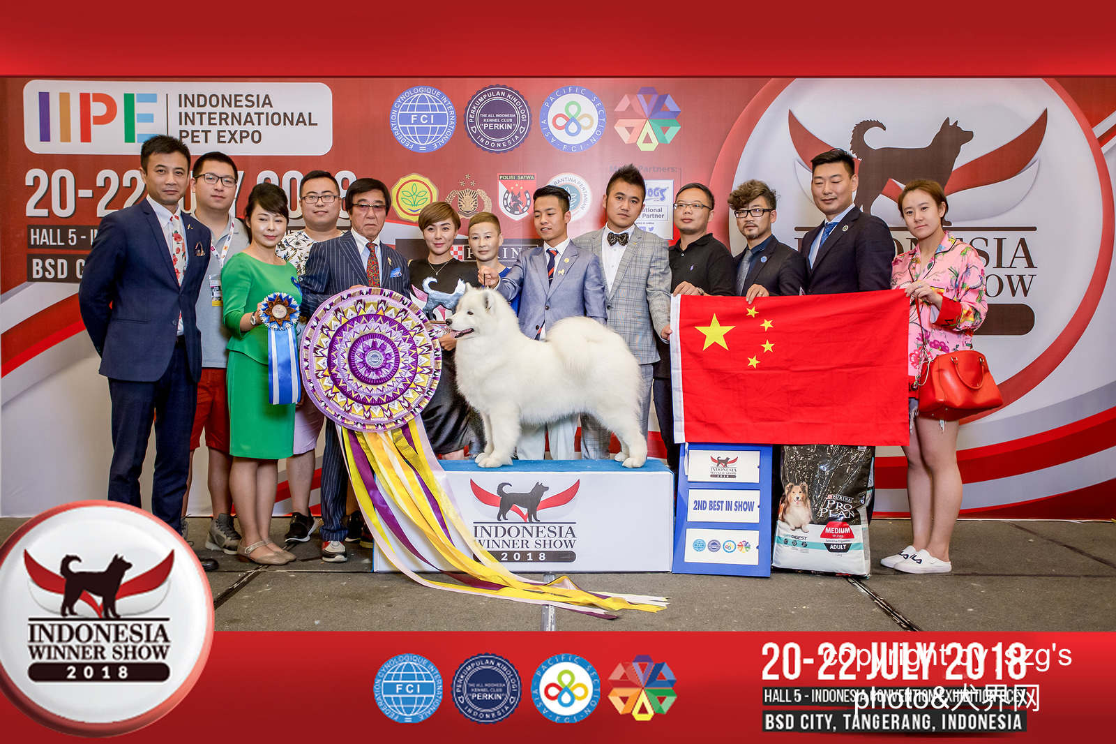 最后一天正赛,魔王家族犬舍 获得open bis2,本人生平第一次蹭照,只为了那一面五星红旗。