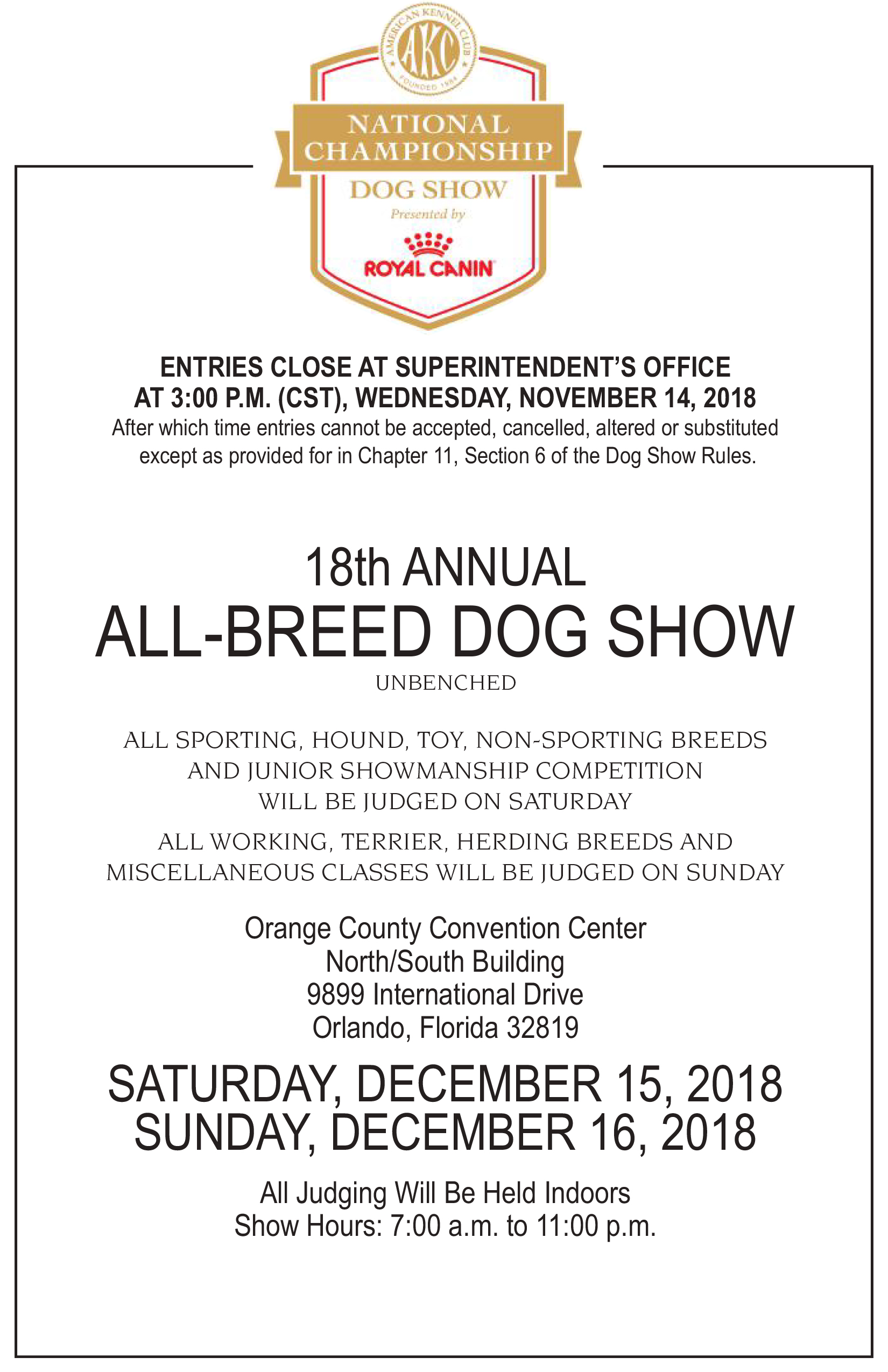 AKC/Royal Canin National 全犬种puppy. junior保险(2018.12.14 周五)