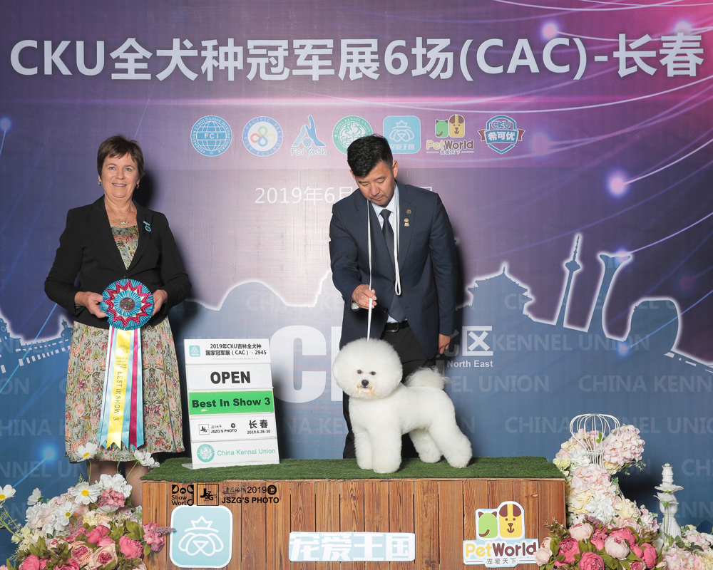2019CKU 九组 卷毛比熊犬排行三 威森 壹名犬舍 dogshow-editor 2019年10月15日排行榜2019CKU 九组 卷毛比熊犬排行三 威森 壹名犬舍已关闭评论1,204 浏览 卷毛比熊犬: CN CH MINIMAKS RE DI PISTACCHIO呼名: 威森拥有者: 壹名犬舍指导手: 杨威以下文字有壹名犬舍提供威森 2018-02-04出生,公犬,2019年3月开始参加CKU犬赛比赛至2019年9月,获得6场BIS 全场总冠军(BIS1,BIS2*2场,BIS3*2场,BIS4场),获得过20场JBIS青年全场总冠军(JBIS1*11场,JBIS2*5场,JBIS3*2场,JBIS4*2场),期待威森赛场更好的成绩! 2019-10-15dogshow-editor