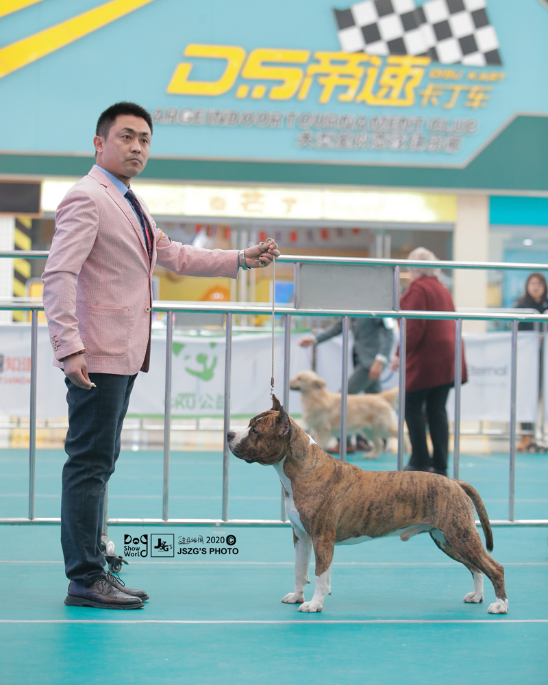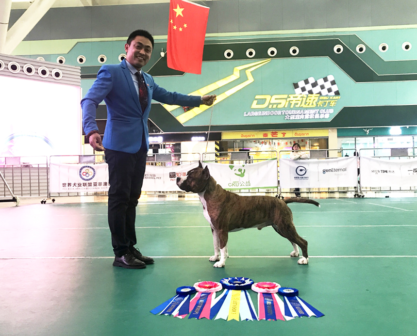 成绩:2020年中国CKU斯塔福犬排行一,父亲 MULTI CH Playmaker’s Cotton Dragon母亲Amstaff Style Fly Away 。父亲Dragon在美国斯塔福繁殖中做出无法磨灭的贡献。子孙中多著名斯塔福赛犬,四届西敏寺斯塔福BOB路易为其直孙。扎克九个月来到中国,迅速完成中国冠军登录、超级冠军登录、世界冠军登录,成绩中不乏BIS1、本部展BIS等战绩!顺利荣获2020年中国CKU犬协排行榜 美国斯塔福德郡梗犬 犬种 排行一!